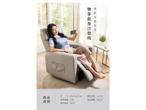 【輝葉良品】樂享起身沙發椅,隨心所欲自由調整舒適角度。